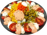 沙拉:新鲜蔬菜与金枪鱼的混合,佐以千岛酱。
